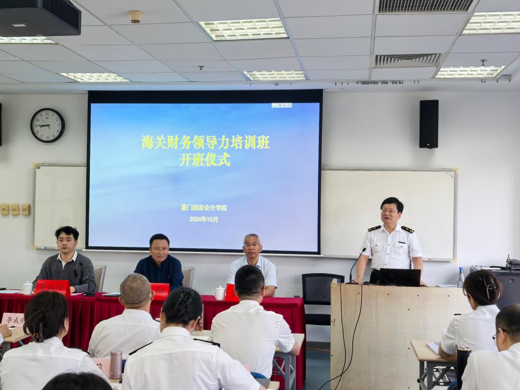 海关总署财务司副司长李松,厦门国家会计学院党委委员、副院长李进西出席开班仪式,李松作动员讲话,各海关单位财务部门参训的处级领导干部45人参加本次开班仪式,随即本次培训正式拉开帷幕。